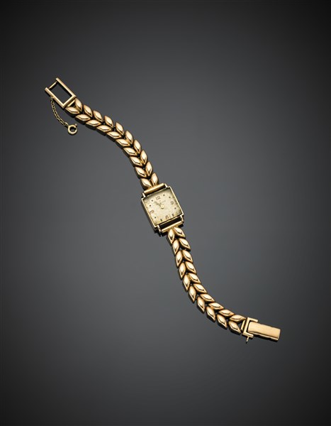 Red gold lady's wristwatch with modular bracelet, quartz movement, g 30.30 circa, length cm 19 circa. Swiss hallmark on the case, dial signed Marvin, case signed Marvin Watch Co., Swiss n°652122, bracelet marked 2 BO with Fascio. (defects and losses)