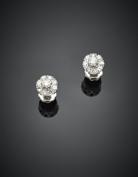 White gold round diamond earrings in all ct. 1.10 circa, g 3.90 circa, diam. cm 0.80 circa.