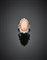Anello in oro bianco con corallo rosa ovale di mm 20.50x11.50 circa e diamanti
