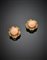 Round mm 14.30 pink cabochon coral yellow chiselled gold flower earclips, g 14.80 circa, length cm 2.90 circa.