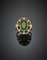 Anello in oro giallo e bianco rifinito con diamanti e tormalina verde ovale cen