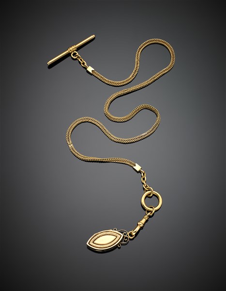 Yellow gold watch chain with locket, g 17.30 circa, length cm 42 circa. (defects)
