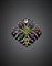 Spilla in oro e argento con diamanti e gemme varie, g 17 circa, lungh. cm 4,10