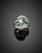 Anello in oro bianco con diamante centrale di ct. 0,65 circa, diamanti e smeraldi a contornarlo, diamanti per complessivi ct. 2 circa, g 13,80 circa misura 19/59.