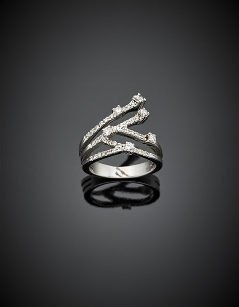 Anello in oro bianco rifinito con diamanti per complessivi ct. 1,00 circa, g 7,