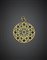 Yellow gold plique-a-jour enamel pendant, g 21.90 circa, diam. cm 5.30 circa. Marked 13 BS. (defects)