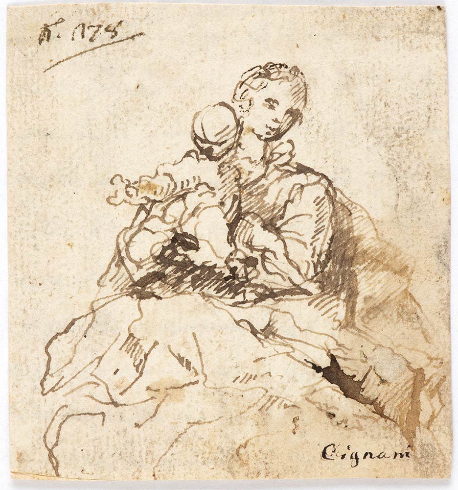 Reca in basso a destra firma: “CIGNANI”. Reca in alto a sinistra sigla inventariale parzialmente leggibile: “... 75”.
