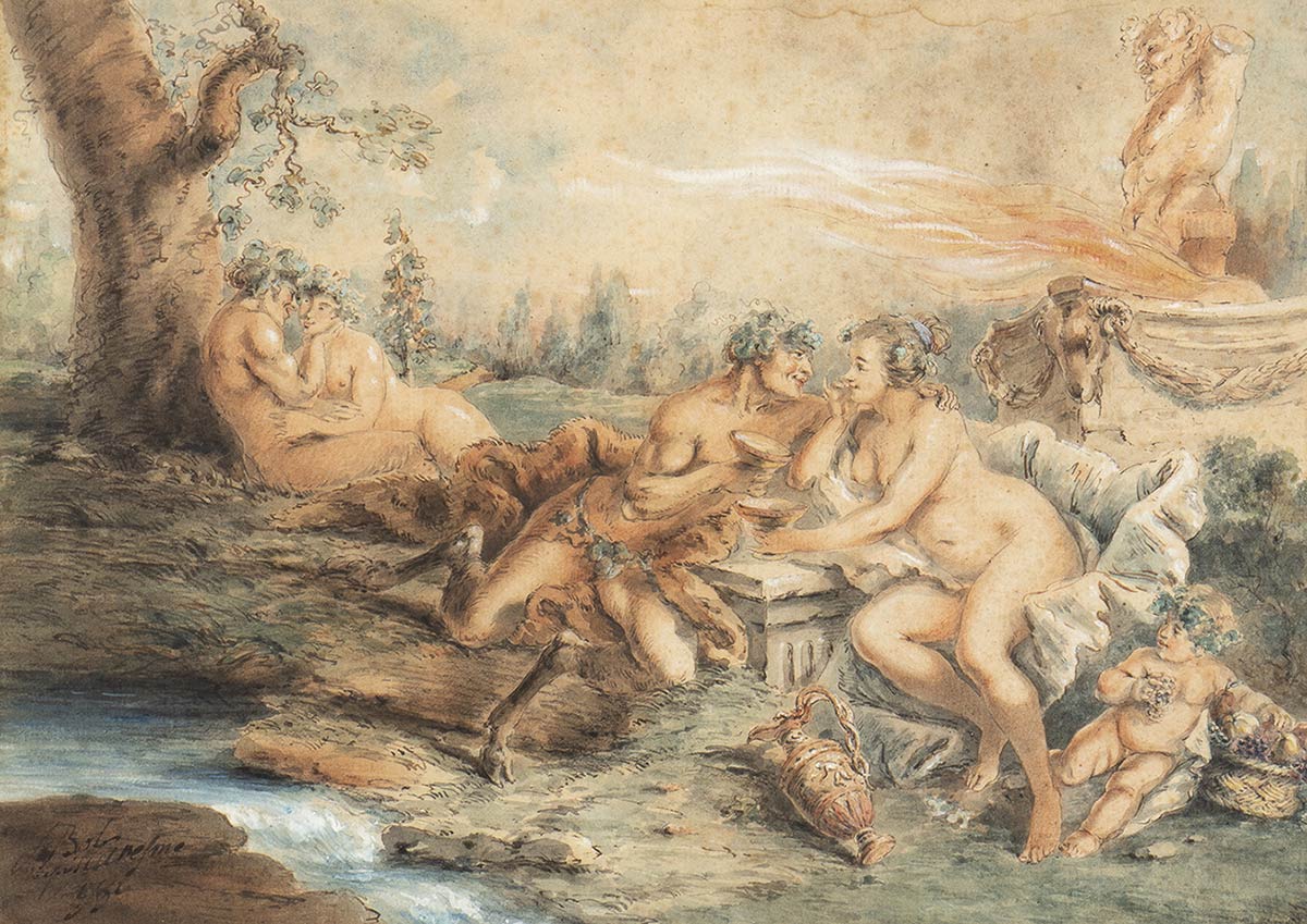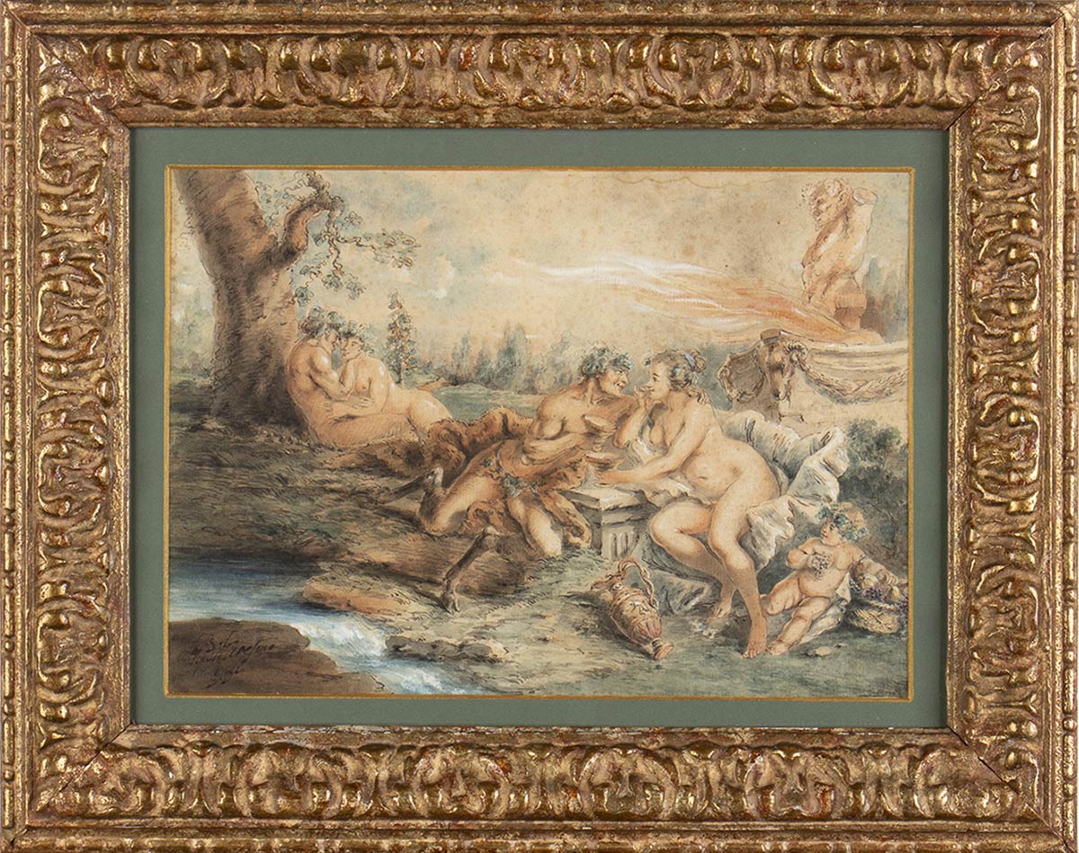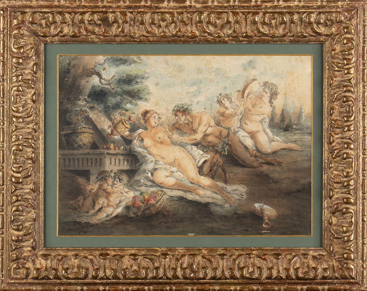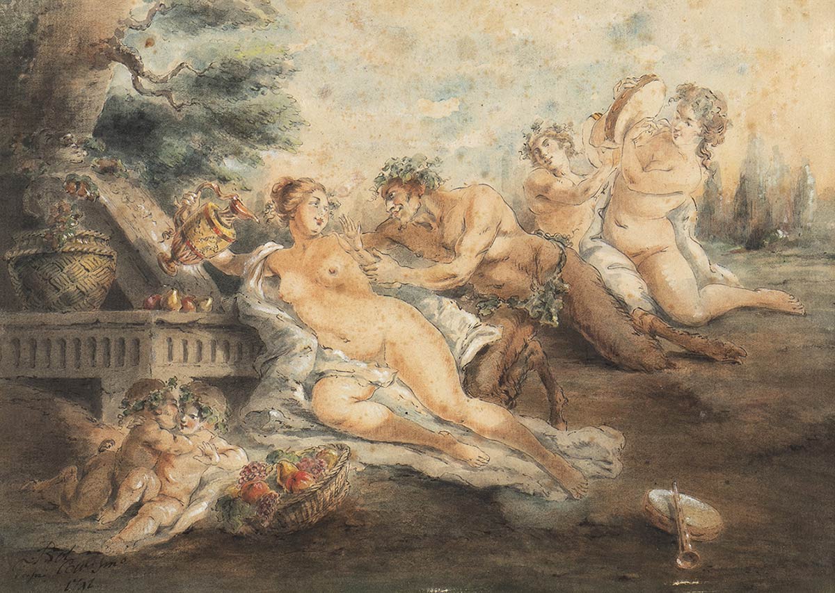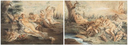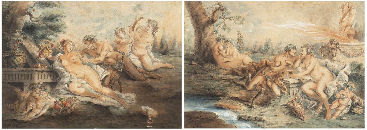 Satiri con ninfe e putti, coppia di disegni en pendant