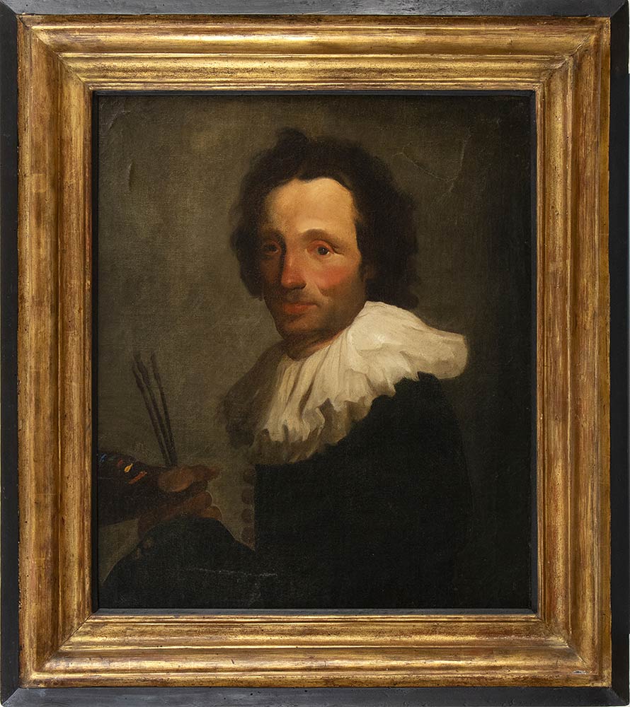 Olio su tela, cm. 66x56,3. Con cornice antica in legno laccato e dorato