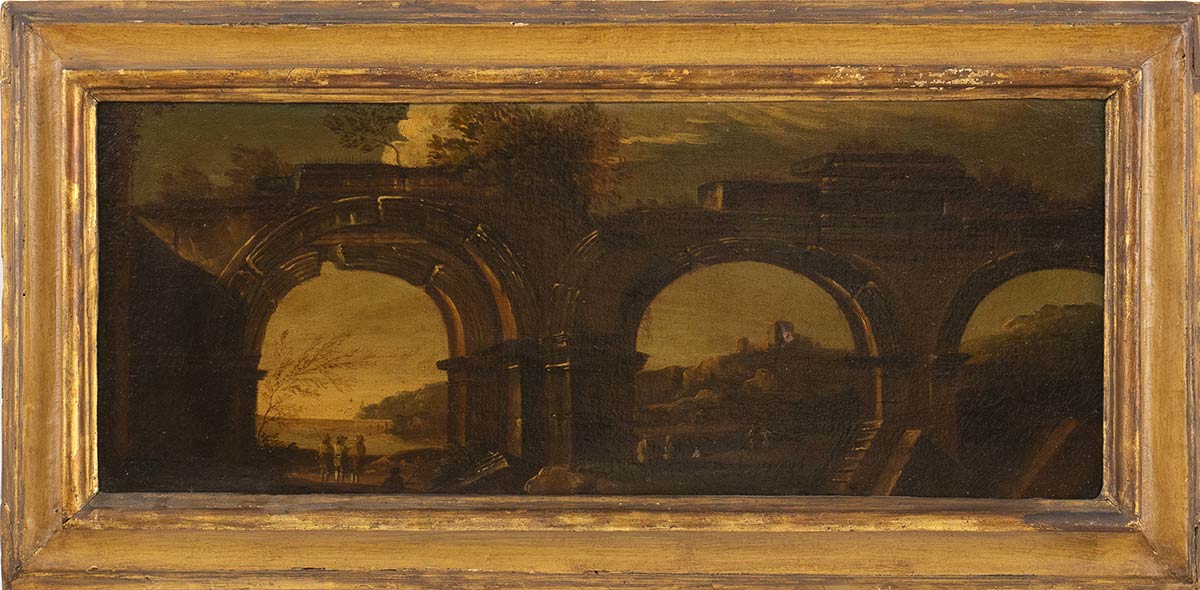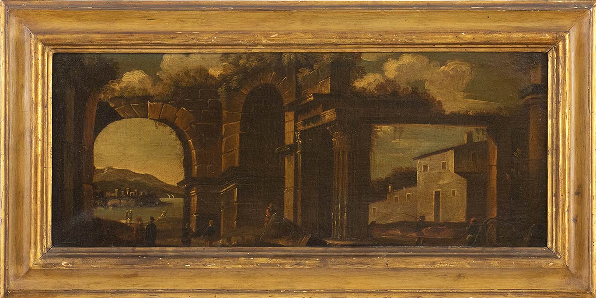 Capriccio con ruderi, edifici e figure - Capriccio con acquedotto e figure, Coppia di sovrapporta