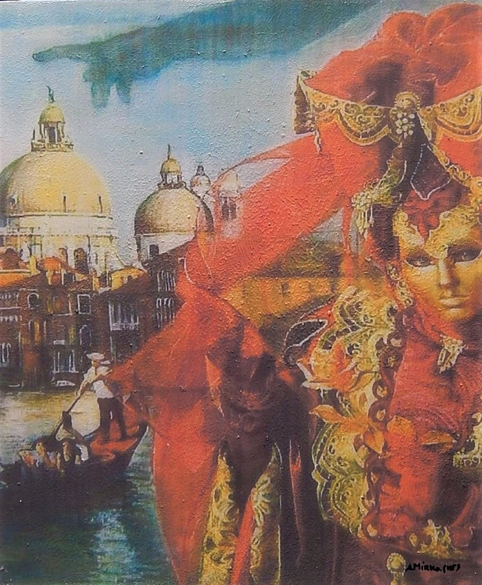 Mirko Anesin MASCHERA olio su tavola, cm 60x50 firma eseguito nel 2014