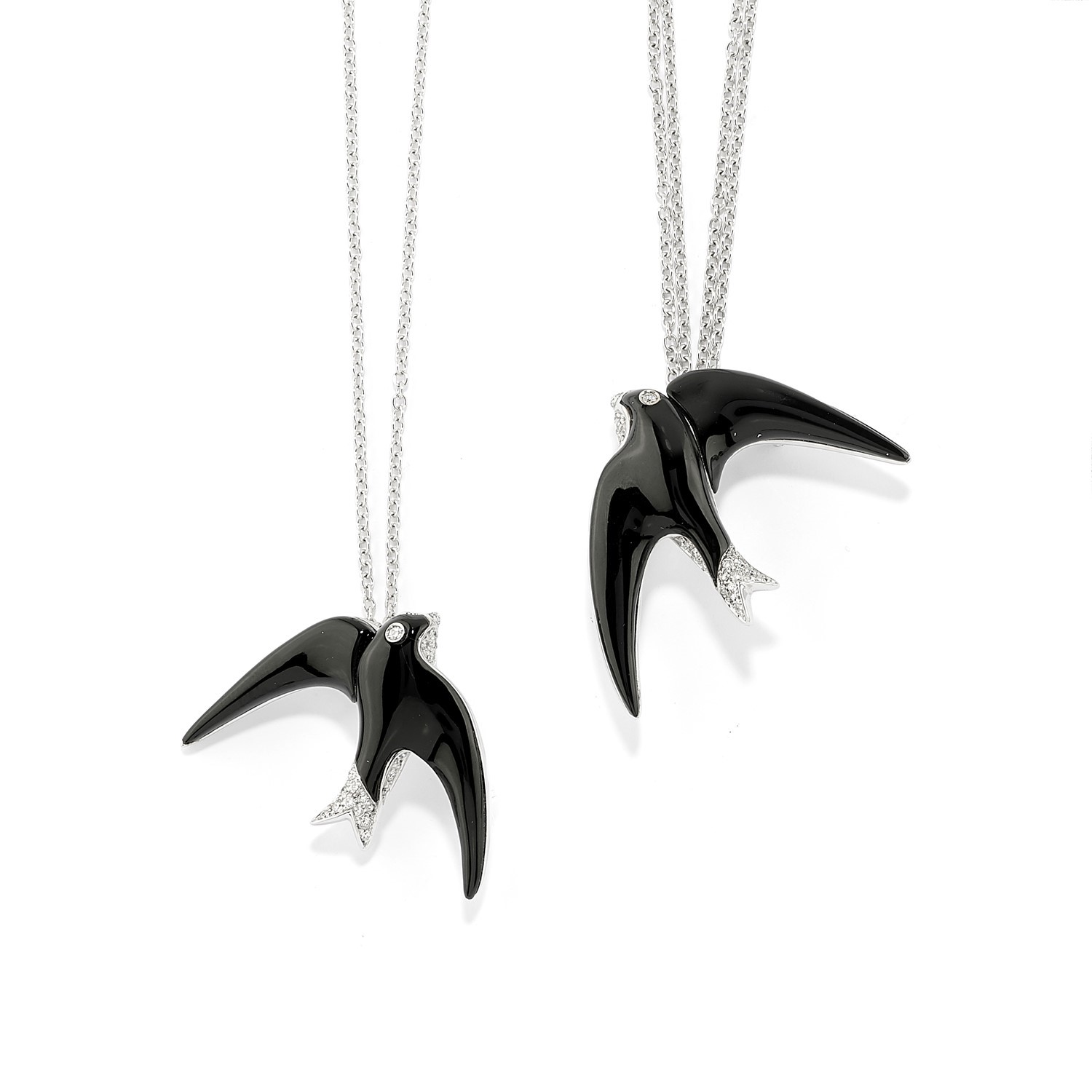 onice e diamanti taglio brillante ct 0,60 ca, con pendenti a forma di rondine.