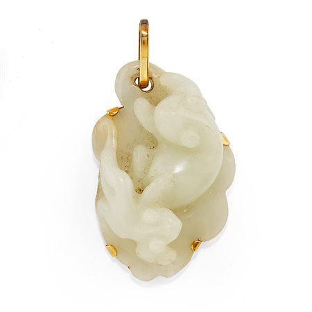 Pendente in oro giallo 18K e giadeite scolpita in altorilievo