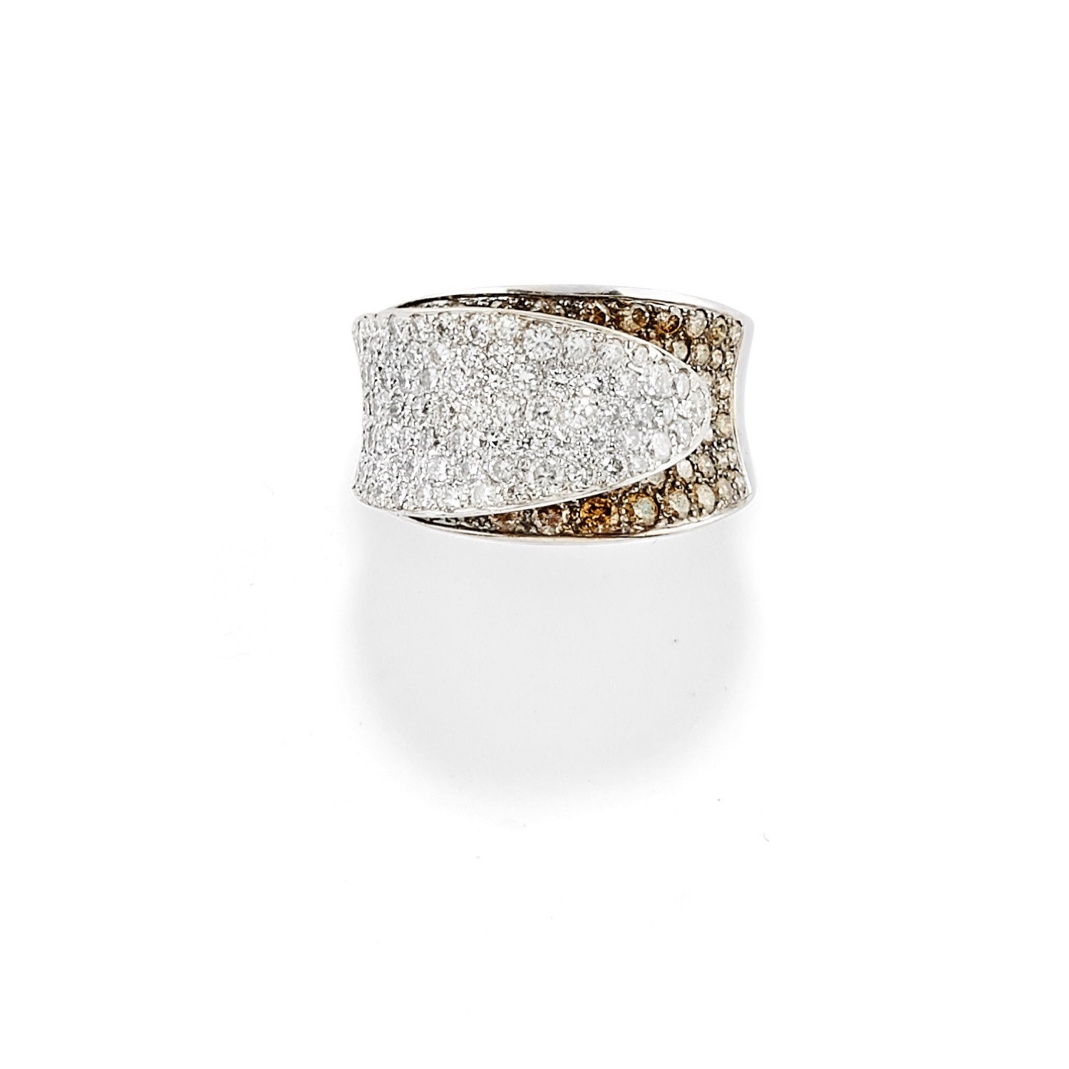 a fascia con pavé di diamanti taglio brillante incolore e bruniti.