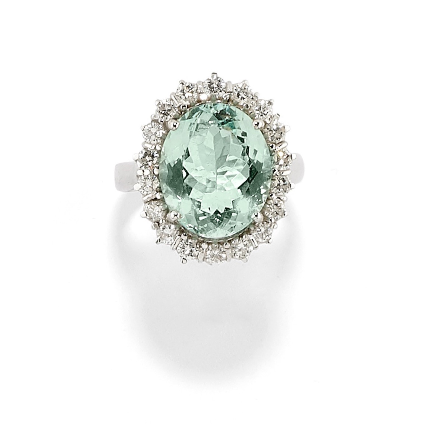 acquamarina taglio ovale entro cornice in diamanti taglio brillante ct 1,00 ca.