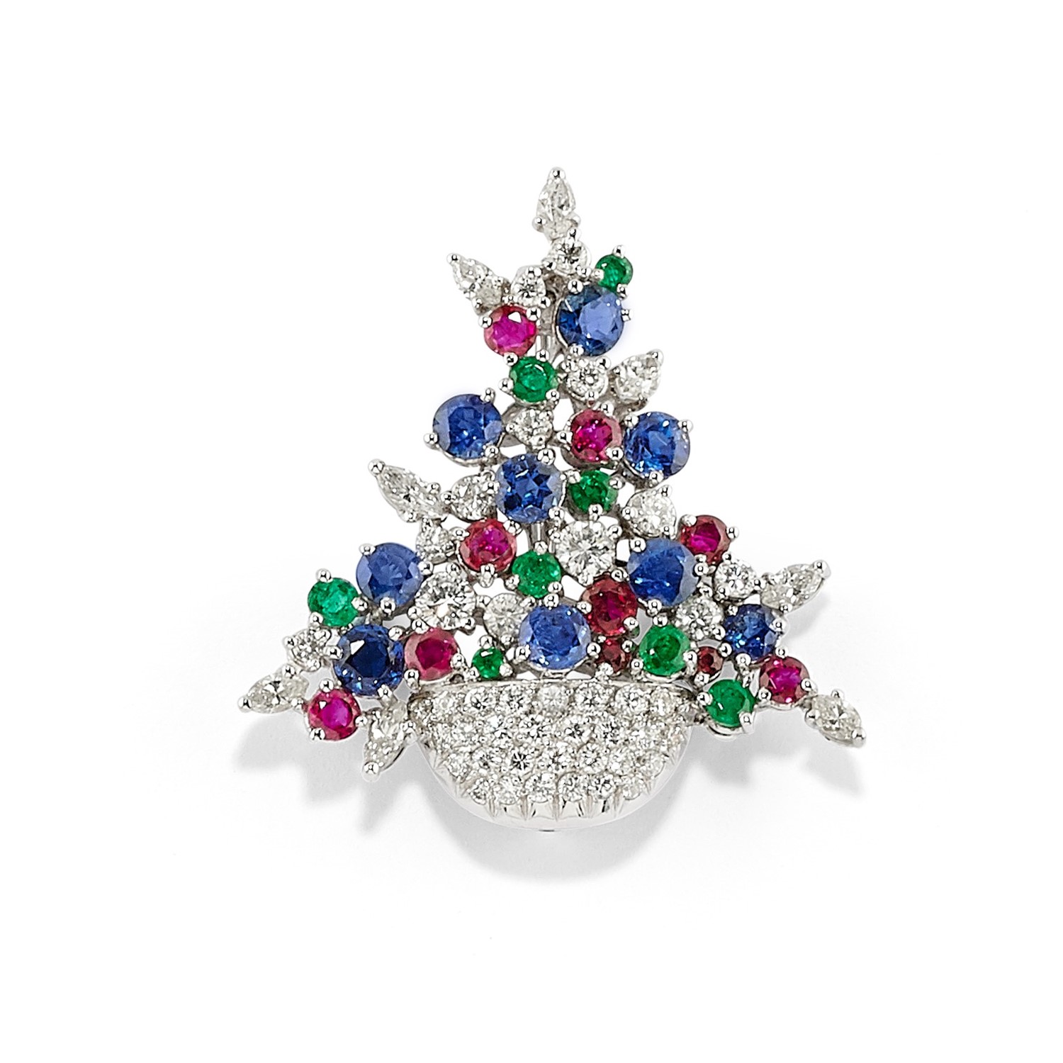 Lot 262 | Spilla in platino diamnti e pietre di colore