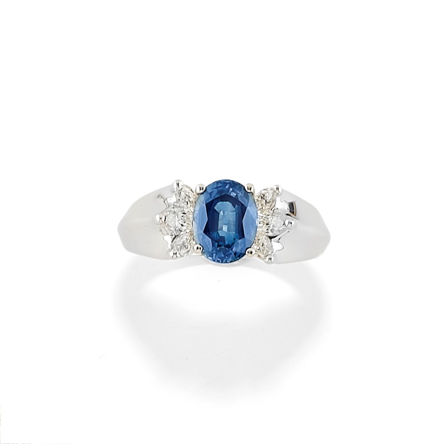 zaffiro taglio ovale ct 2,00 ca e diamanti taglio marquise ct 0,60 ca.