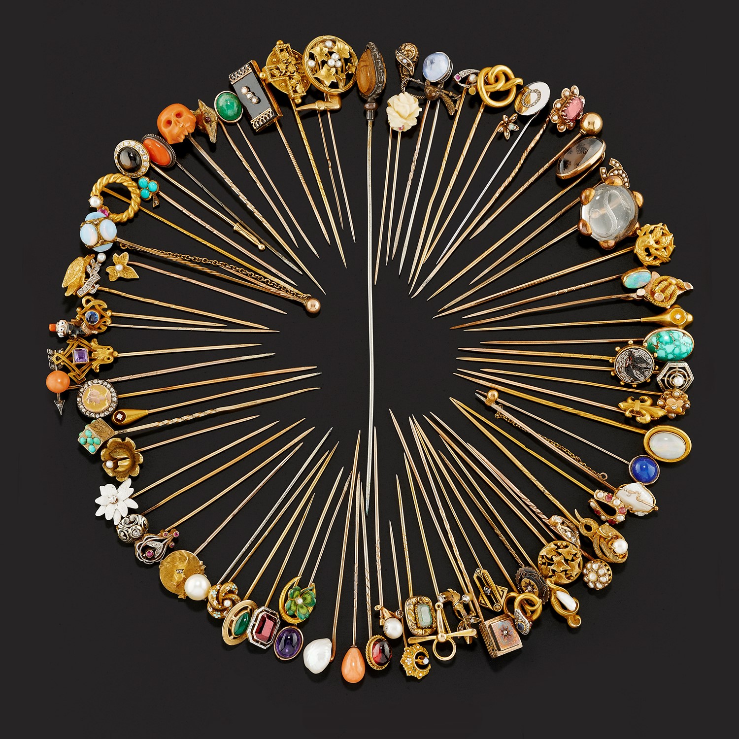 Settantasei spilloni in oro bicolore bassa caratura e 18K