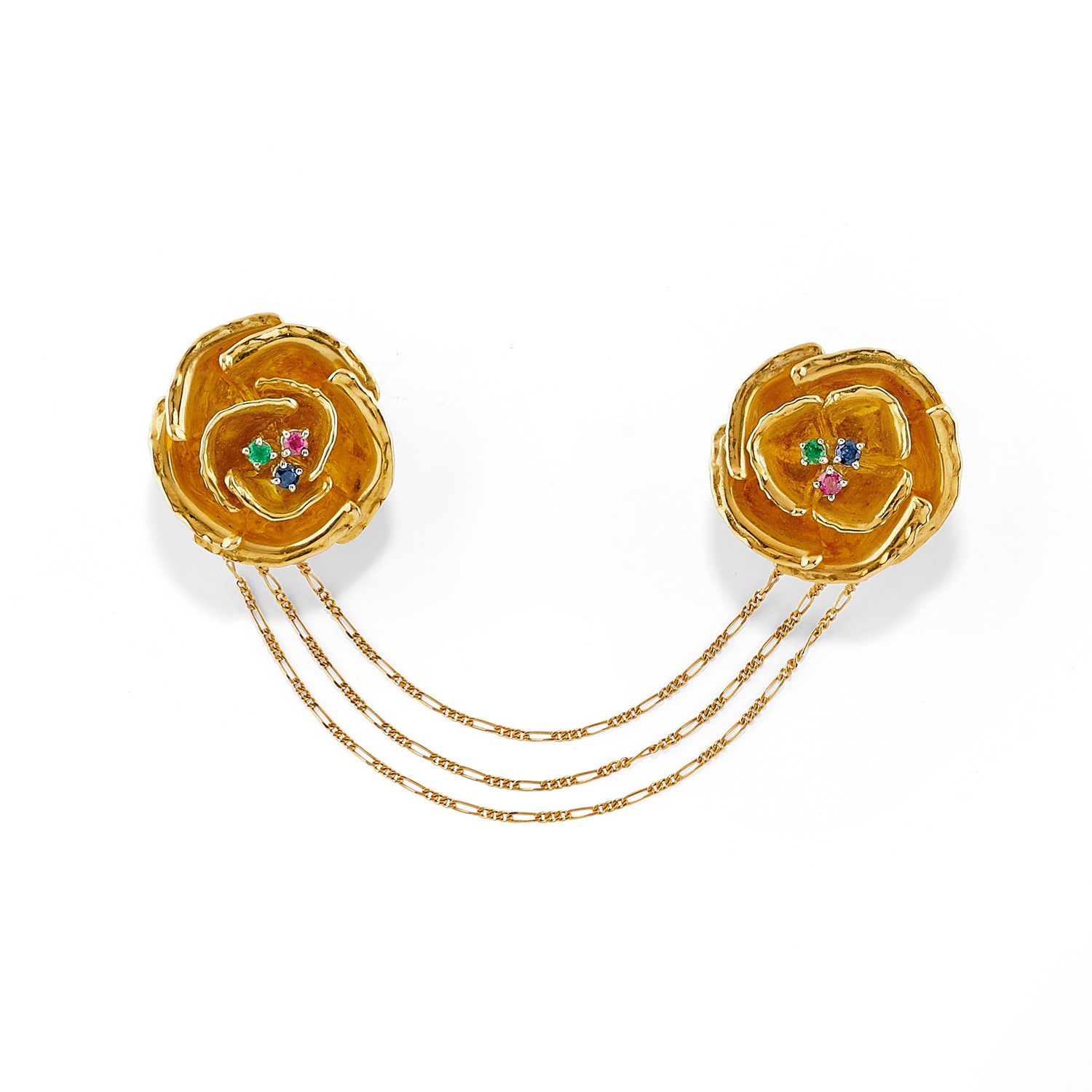 rubini, smeraldi e zaffiri, realizzata con due motivi a fiore.