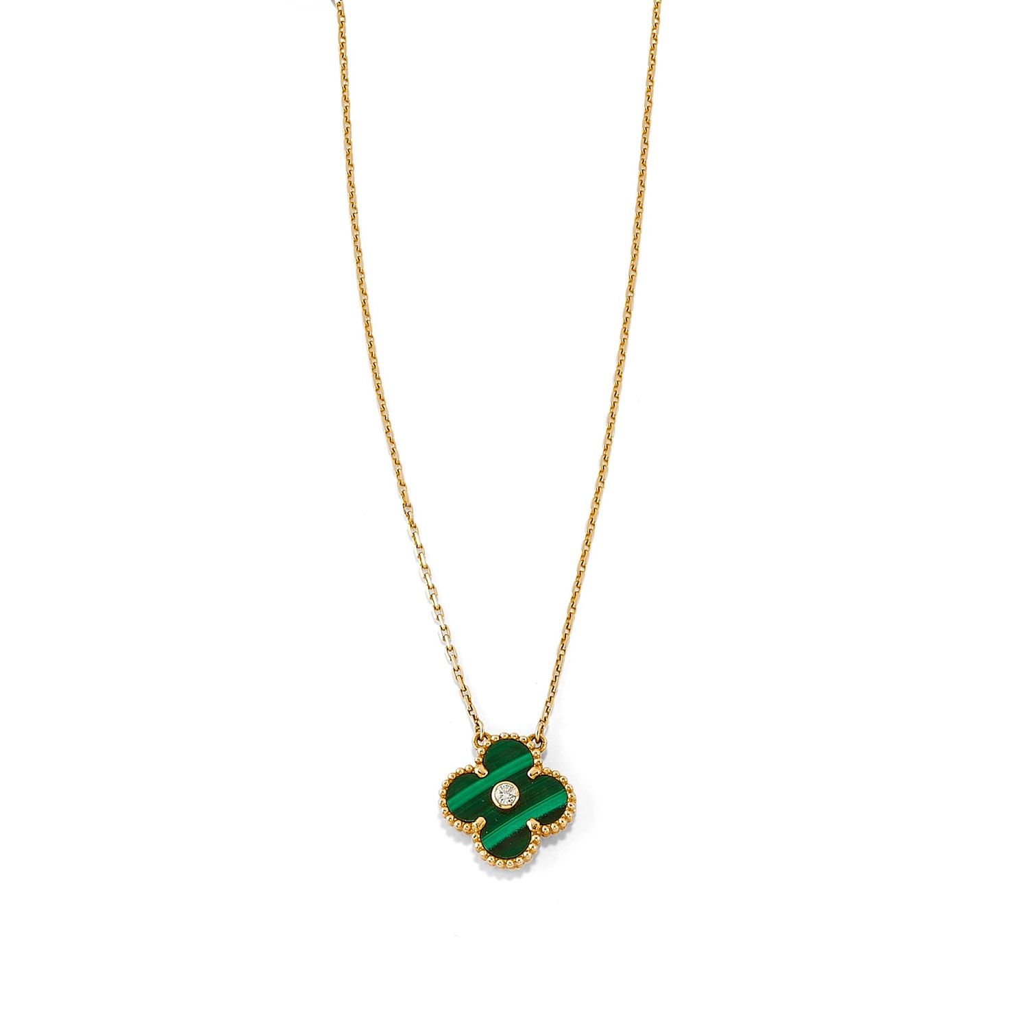 malachite e diamanti taglio brillante, collezione "Alhambra", con astuccio.