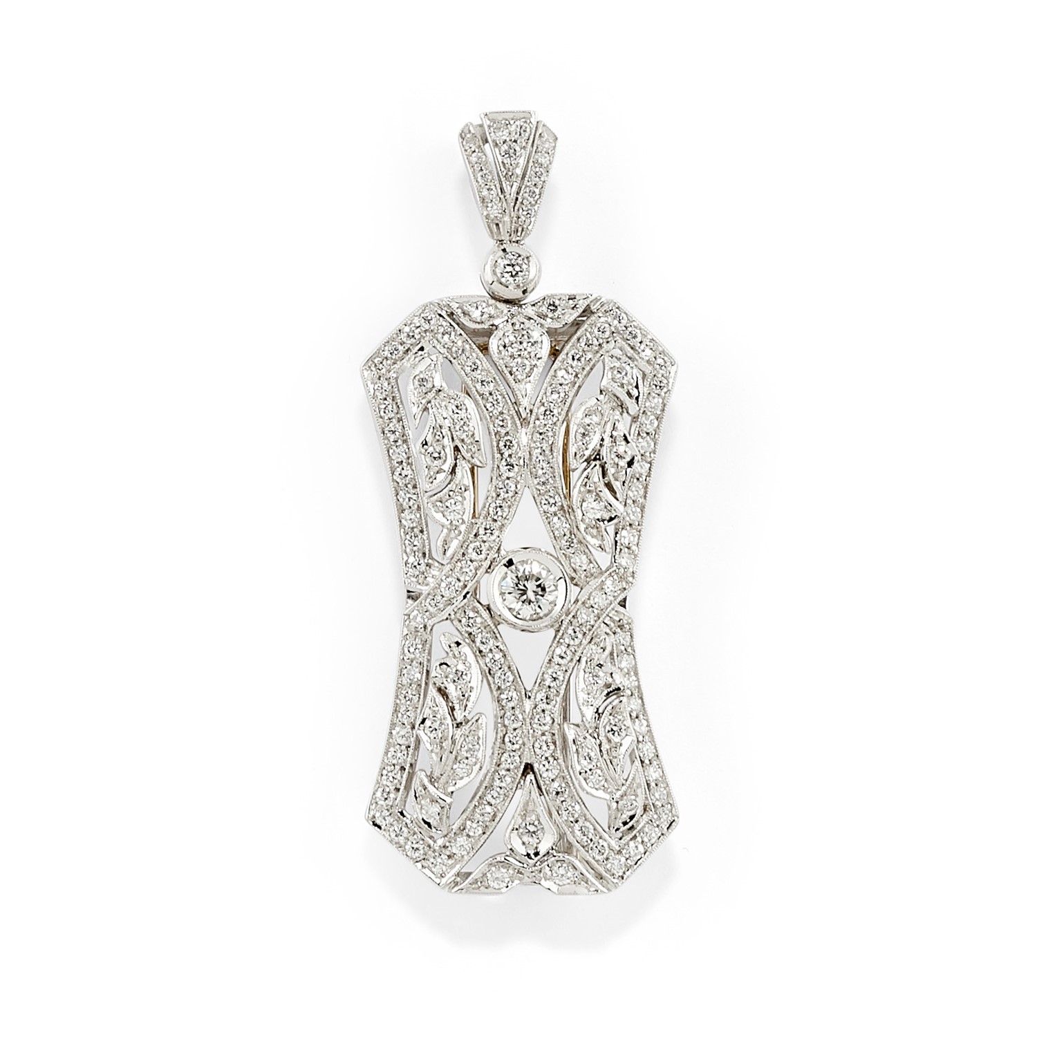 Pendente spilla in oro bianco 18K e diamanti taglio brillante