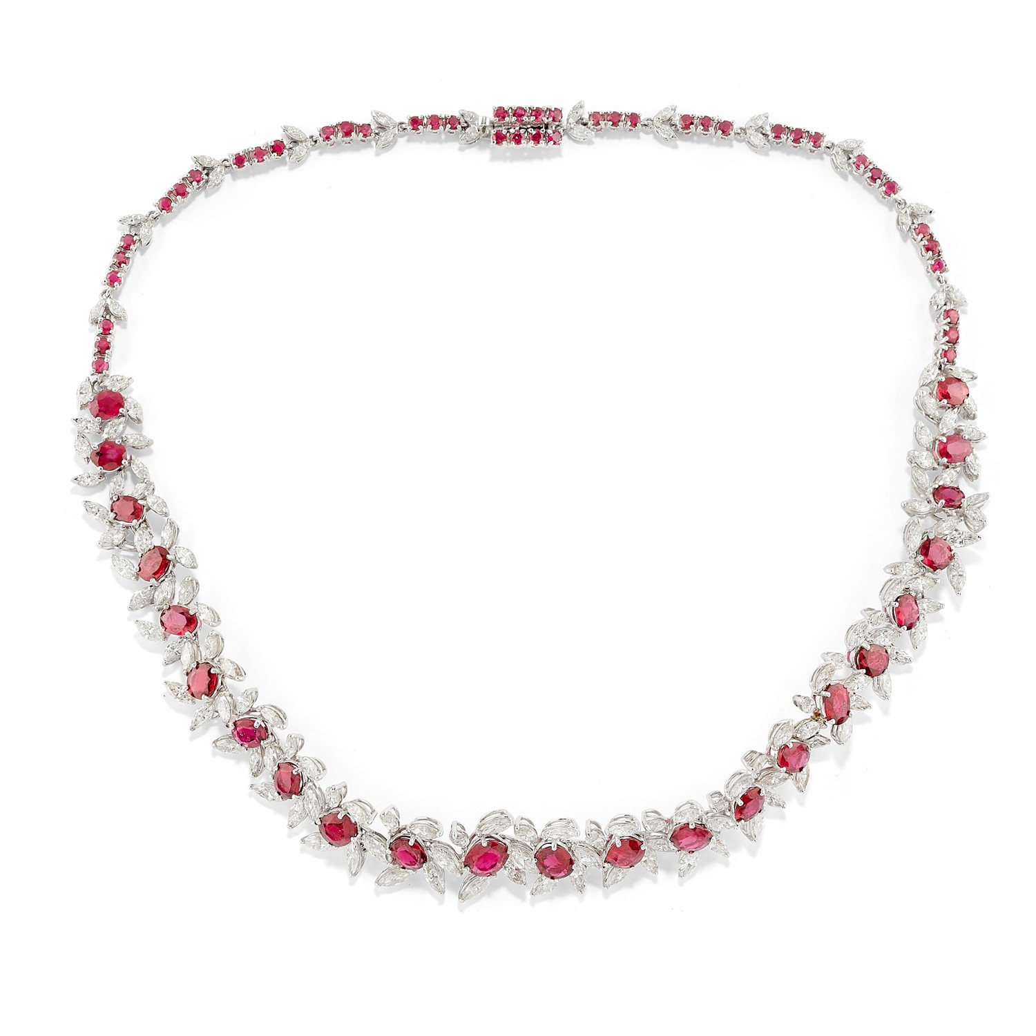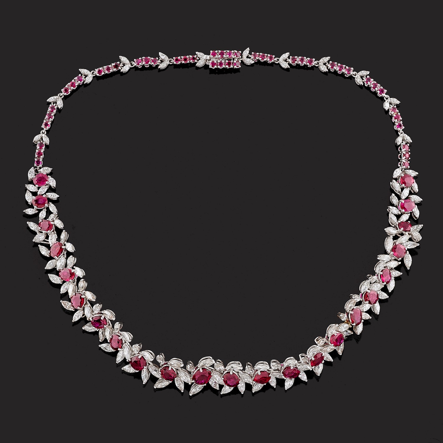interamente percorsa da rubini Thailandia taglio ovale rotondo ct 15,00 ca e diamanti taglio navette ct 10,00 ca.