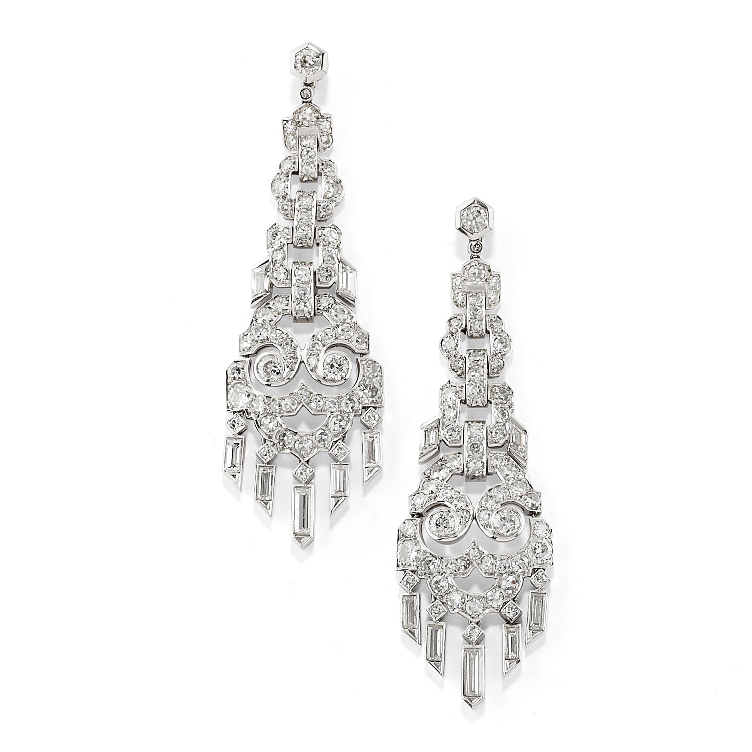 diamanti taglio baguette, huit-huit, e fantasia ct 4,00 ca, settori incernierati con terminali frangiati, punzoni del Fascio.