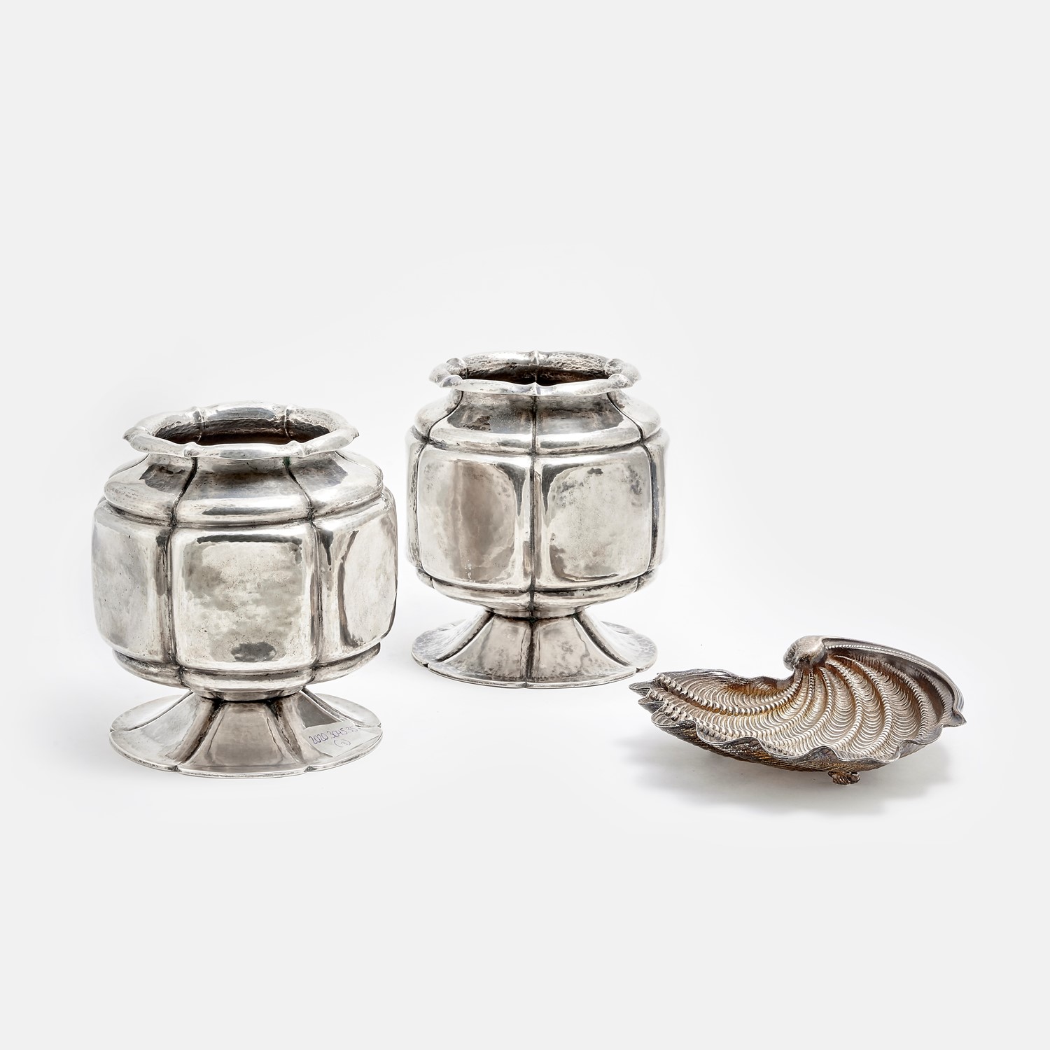 composto da due vasi firmati Buccellati e un centrotavola a conchiglia firmato Gianmaria Buccellati.