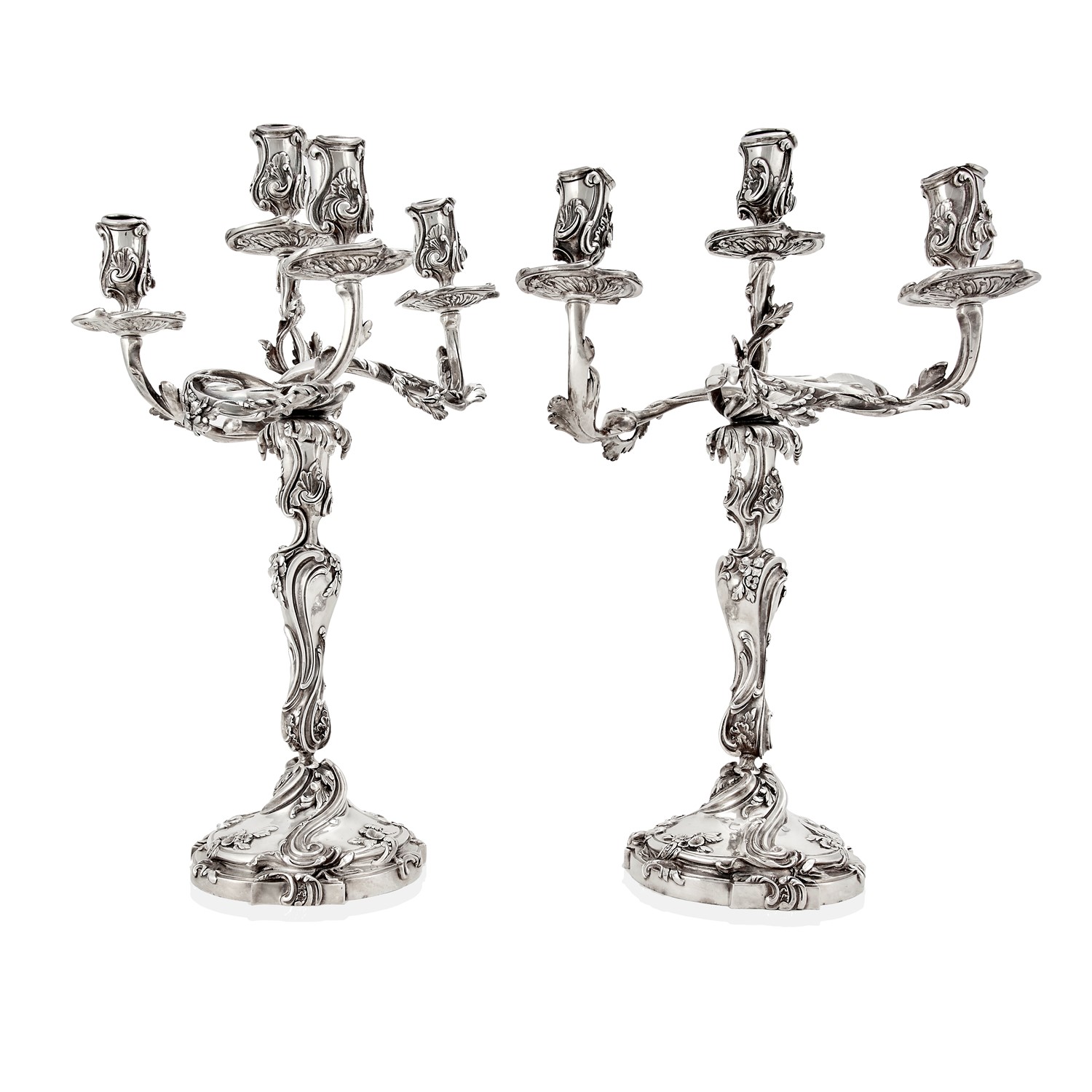 H. Voisenet - Coppia di candelieri, Francia fine XIX secolo in bronzo argentato