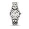cassa rotonda, quadrante guilloché con numeri arabi in smalto nero, data al tre, movimento al quarzo, con astuccio e certificato.