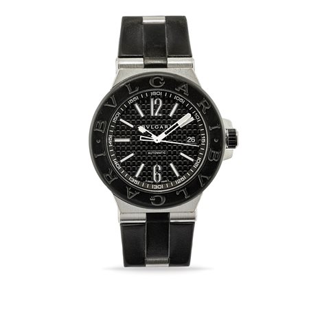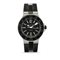cassa rotonda, quadrante nero con indici e numeri arabi applicati, data al tre, cinturino e lunetta in caucciù, con astuccio e garanzia.
