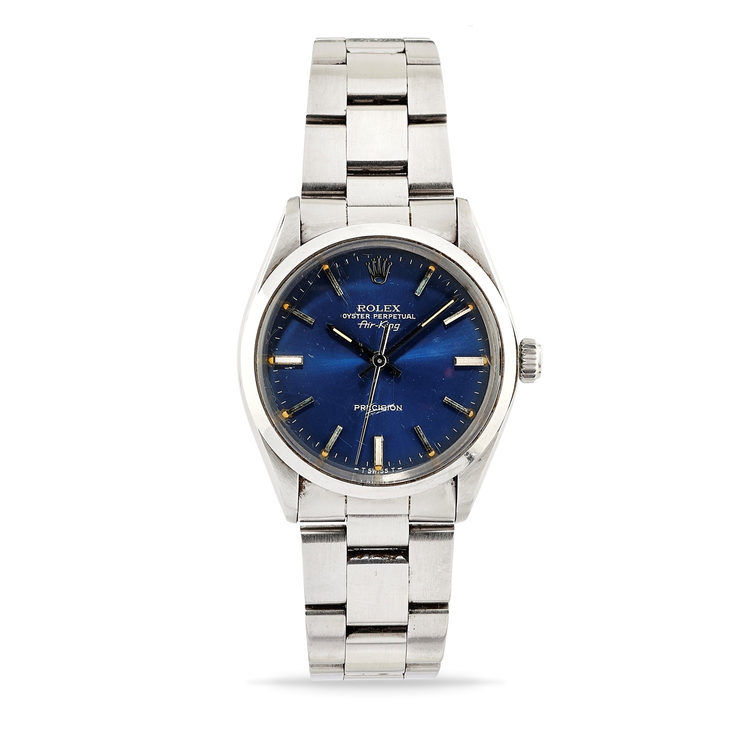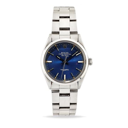 ref. 5500, seriale 58xxxxx, in acciaio, cassa rotonda, quadrante blu con indici applicati, secondi al centro, movimento a carica automatica, con astuccio e garanzia.