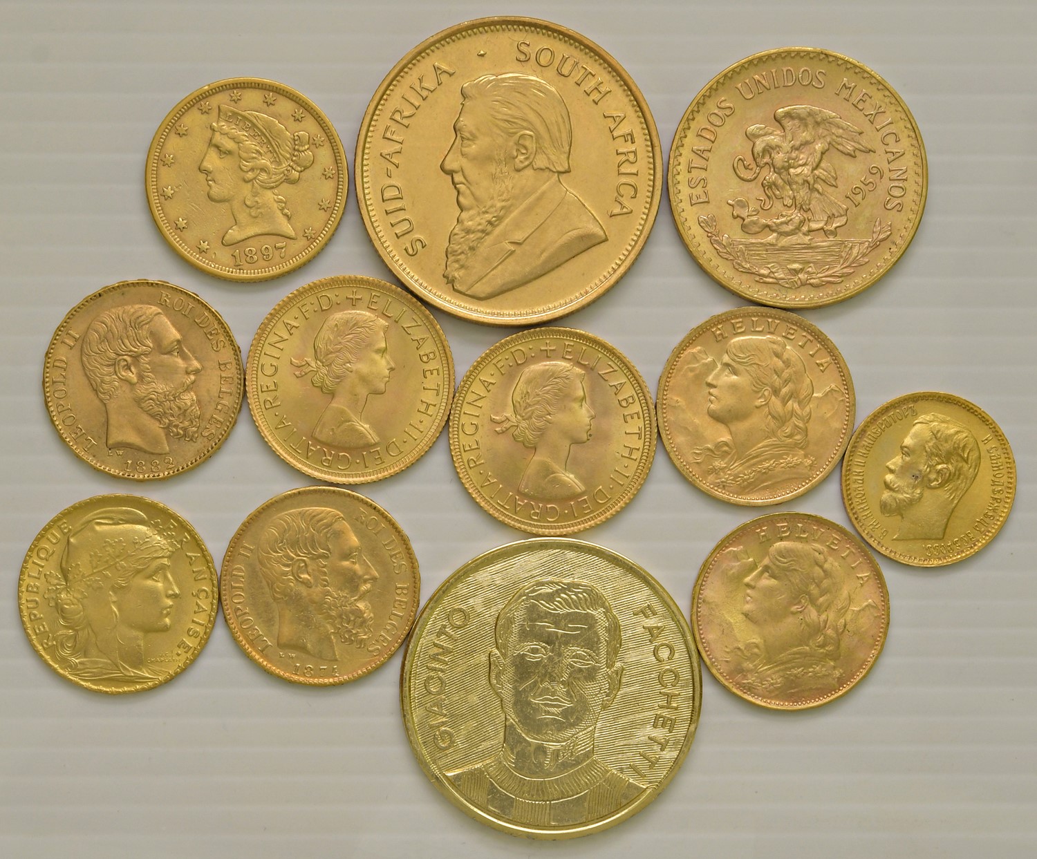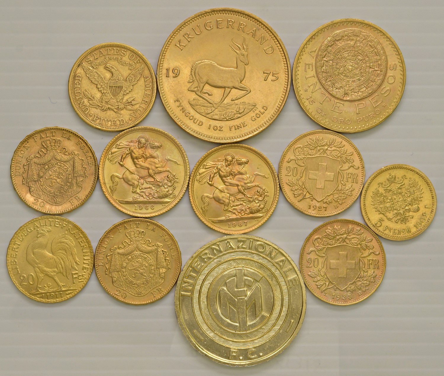 11 monete in oro, fa parte del lotto un gettone in metallo dorato.
