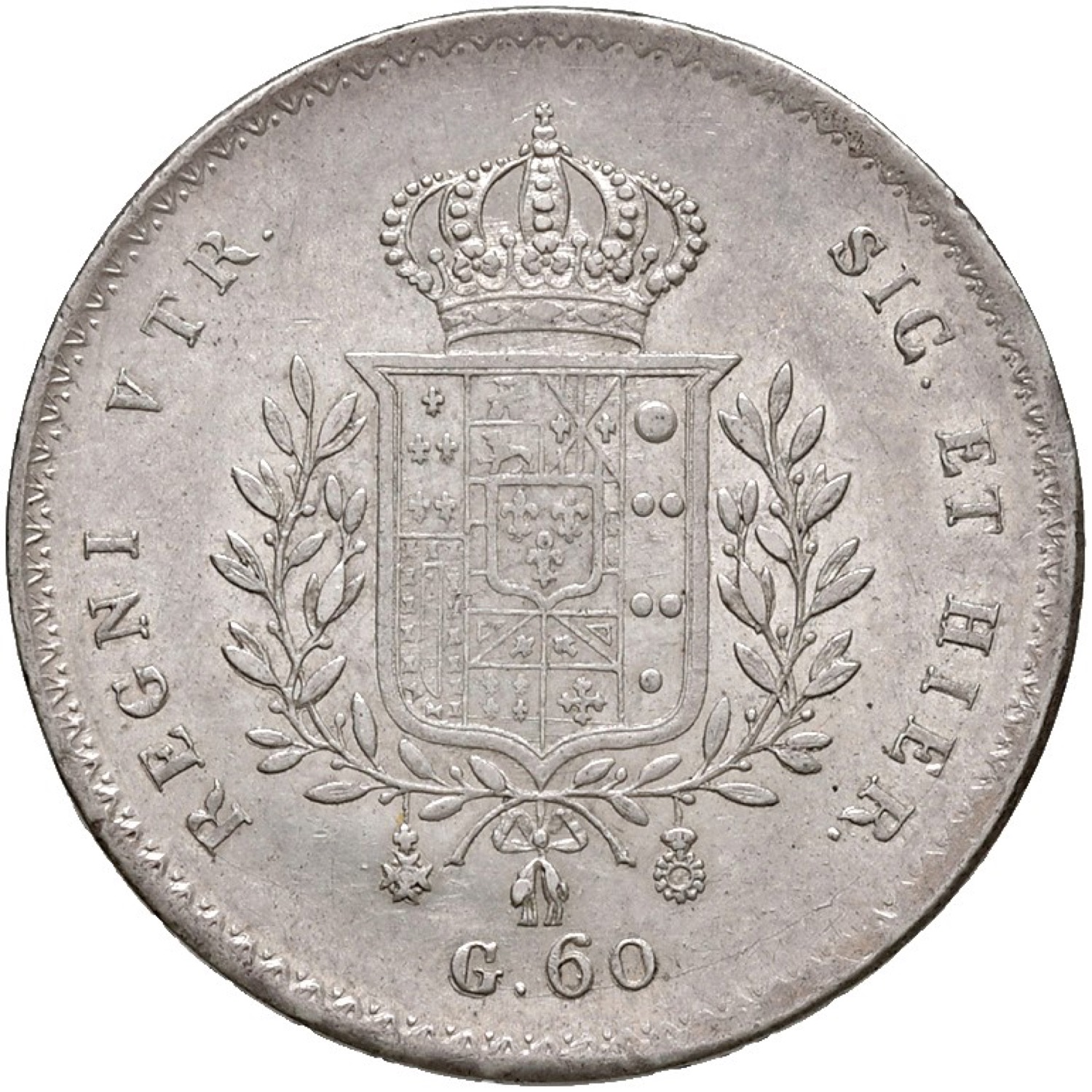 Mezza piastra da 60 grana 1826. P.R. 11. AG. Moneta molto rara, difficilmente reperibile in così alta conservazione. SPL