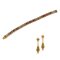 oro giallo 18K, oro bassa caratura, granati, rubini e smalti, composto da bracciale e coppia di orecchini.