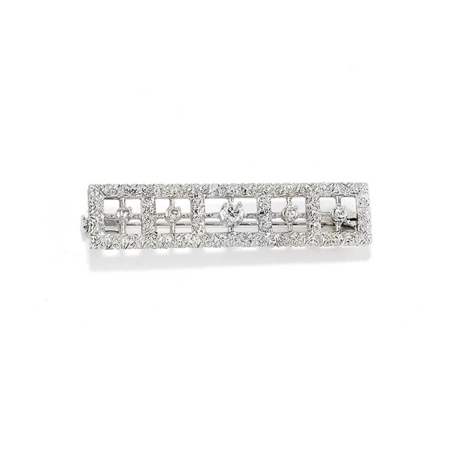 diamanti taglio brillante e huit-huit ct 0,15 ca, a barretta. Peso g 9,40 cm 4,50x0,50