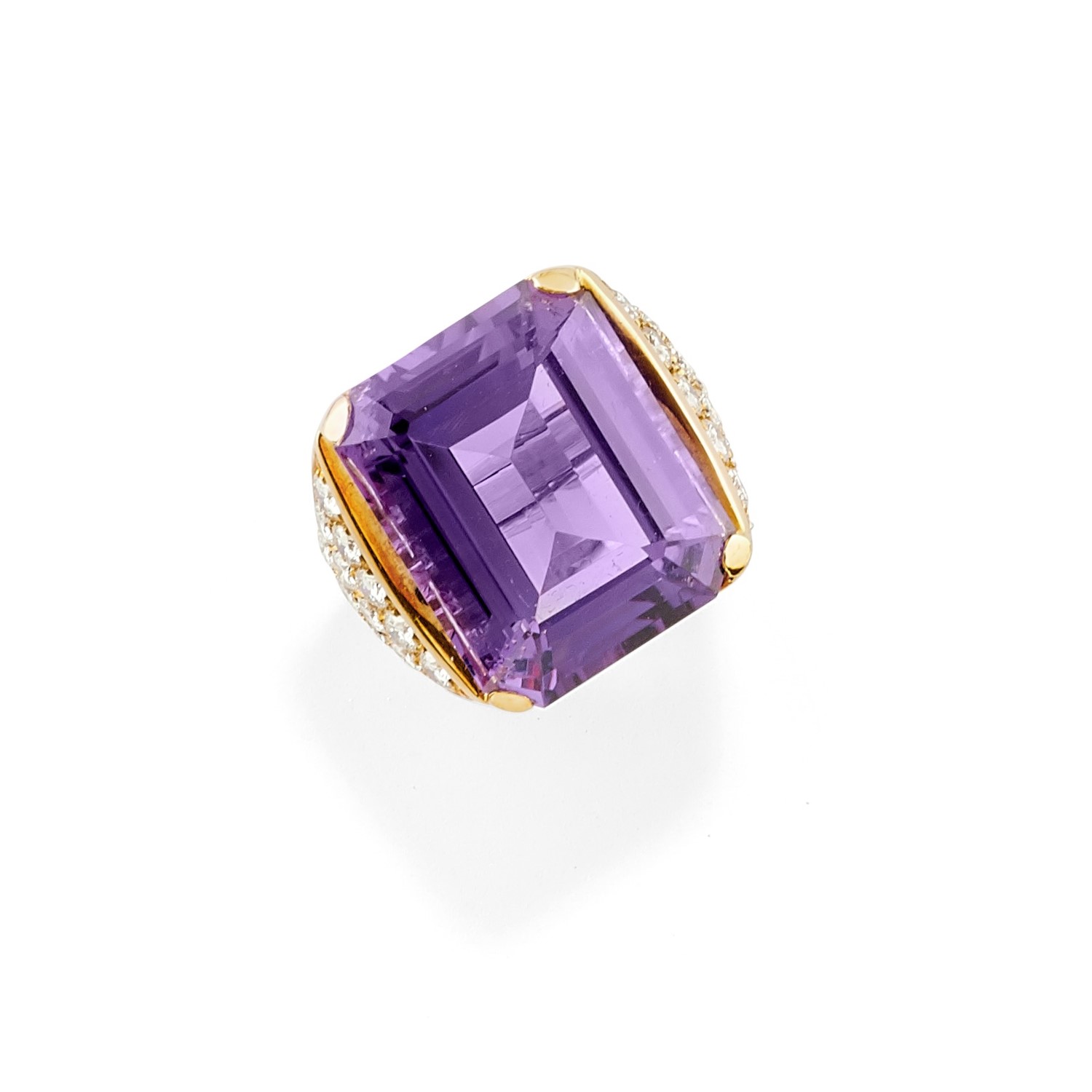 ametista taglio rettangolare sfaccettata ct 29,50 ca e diamanti taglio brillante ct 2,70 ca.