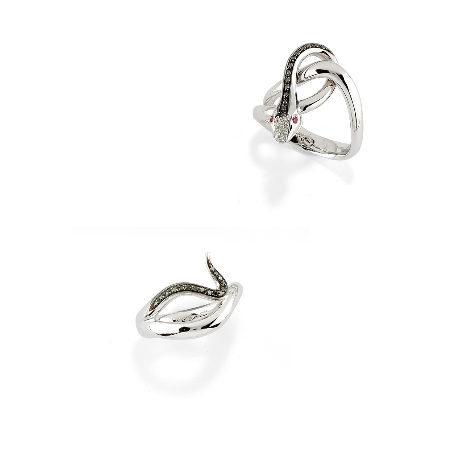 rubini, diamanti neri e incolori ct 0,20 ca, a serpente.