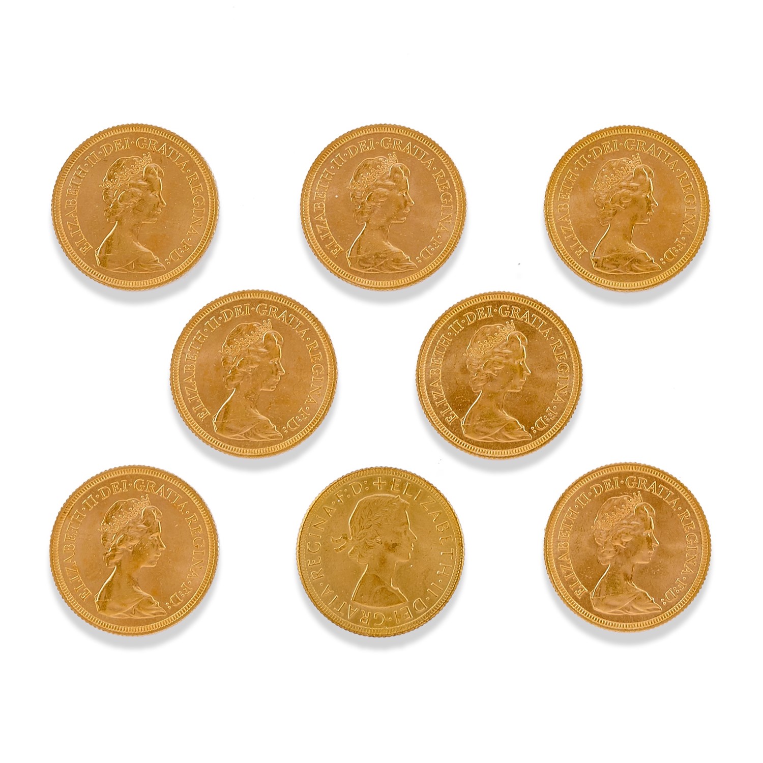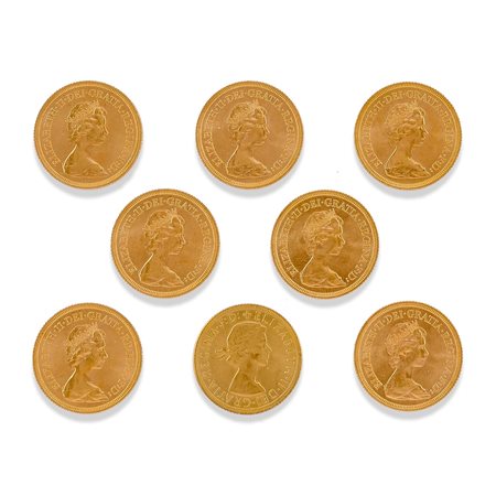 Otto sterline sette in oro titolo 916 2/3 e una riproduzione (non autentica)