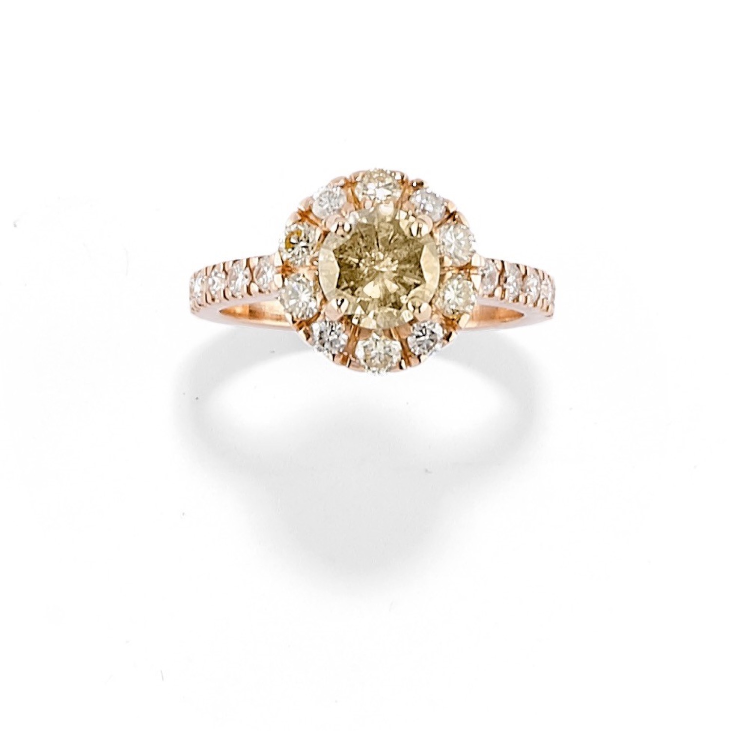 al centro un diamante taglio brillante ct 1,00 ca e diamanti a contorno ct 1,00 ca.