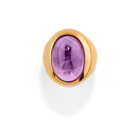 in oro giallo 18K e ametista taglio ovale cabochon.