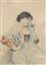 Pietro Scoppetta "La fidanzata" acquerello su carta (cm 48x34) Firmato in basso