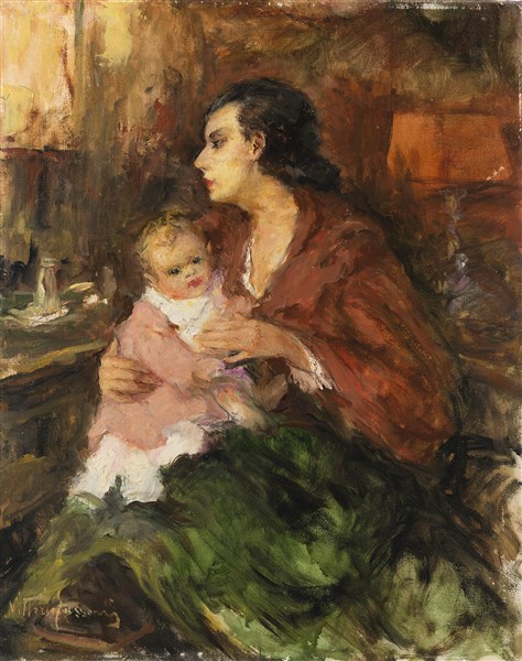 Vittorio Gussoni "Mammina" olio su cartone telato (cm 49x39) Firmato in basso a