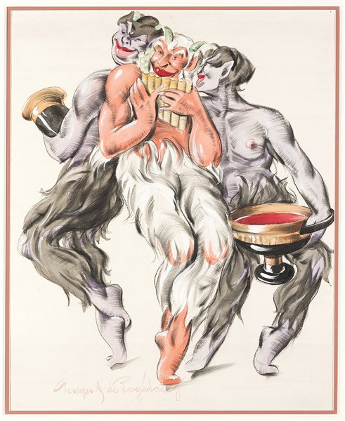 Georges De Pogedaieff Anatolevich "La danza dei fauni" tecnica mista su carta (