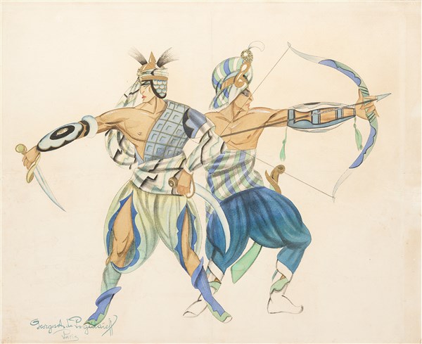 Georges De Pogedaieff Anatolevich "I guerrieri" tecnica mista su carta (cm 45x5