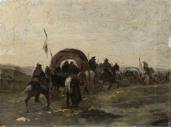 Sebastiano De Albertis "La carovana" olio su tela (cm 30x40) Firmato in basso a