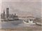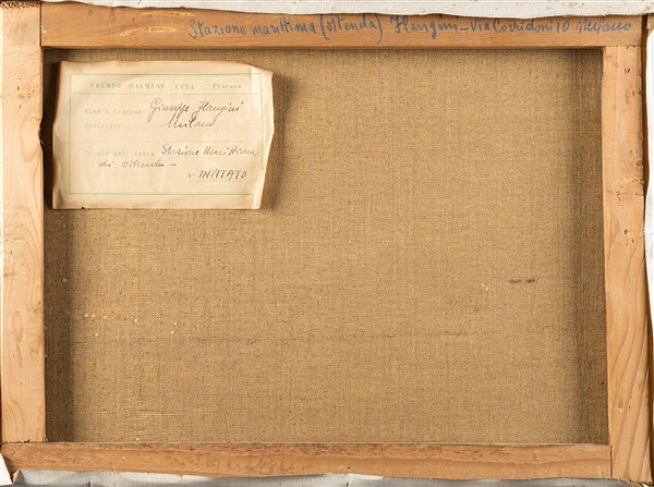 Giuseppe Flangini "Stazione marittima di Ostenda" olio su tela (cm 30x40) Firma