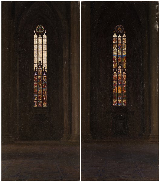 Lot 170 | Giorgio Belloni "Trittico del Duomo 2" due dipinti ad olio su tela (cm 70x31) r