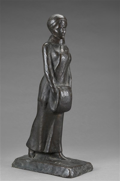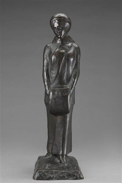 Giorgio Kienerk "Il manicotto" scultura in bronzo (h cm 35) Firmata alla base