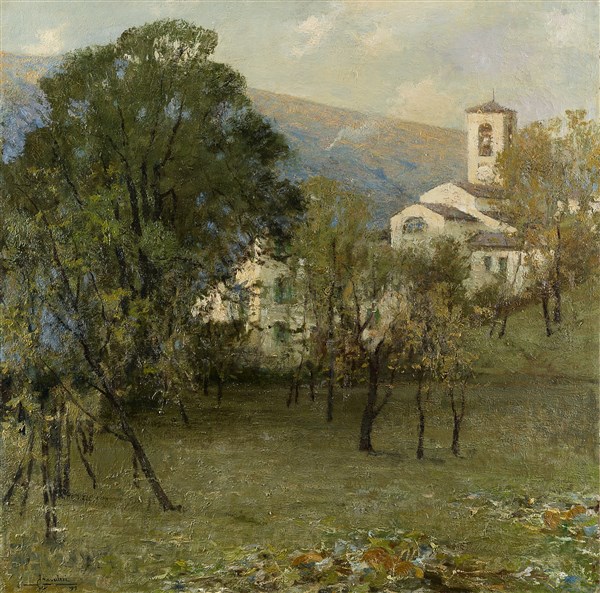 Lodovico Cavaleri "In Val Camonica" 1917 olio su tela (cm 87x86) Firmato e datat